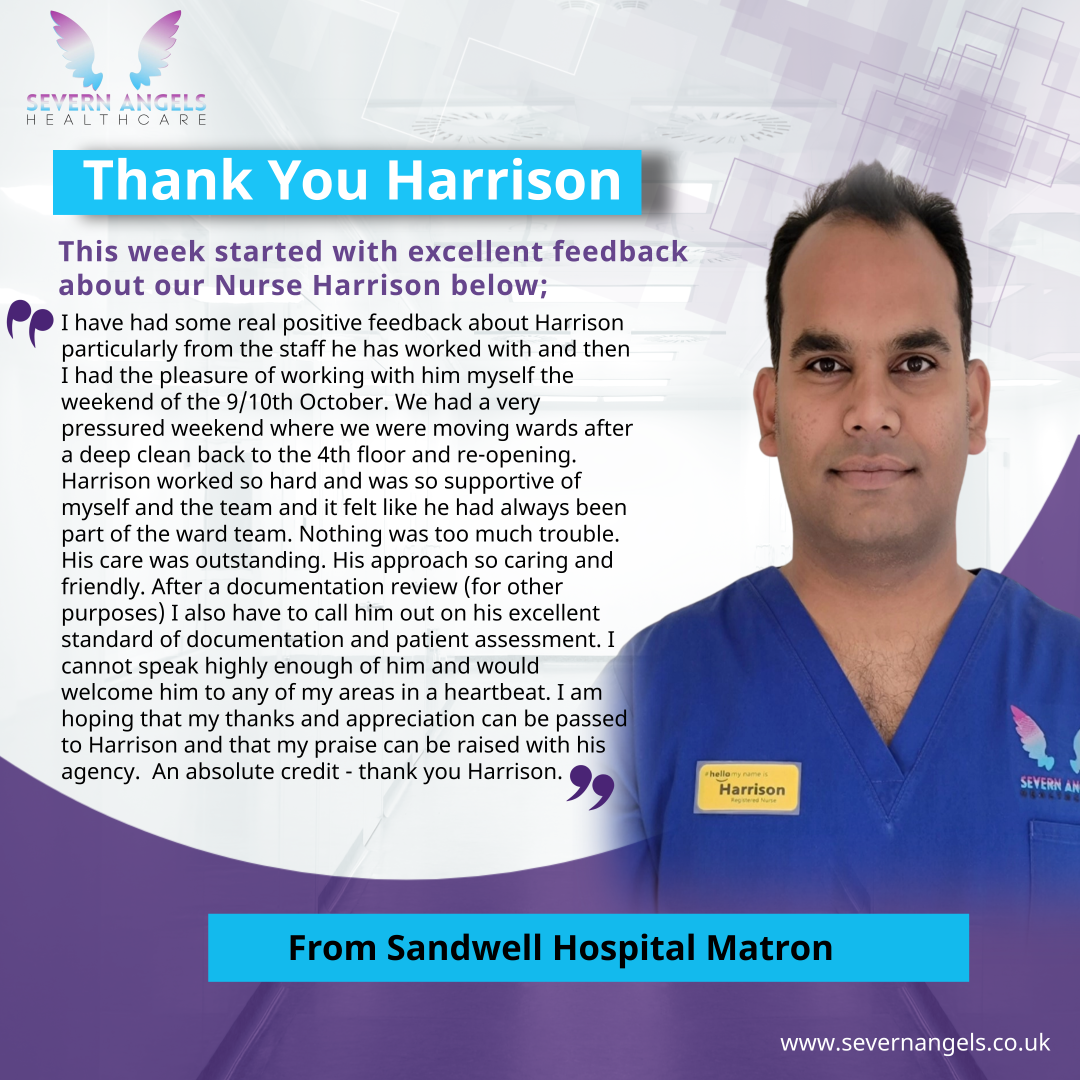 Chat with us, powered by LiveChat feedback about our Nurse Harrison - Severn Angels